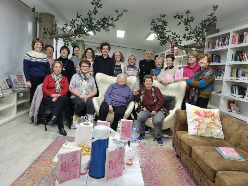 Ballobar, Huesca, 13/12/2022: encuentro con grupo de lectura en la biblioteca pública “Pascual Berniz», con Carmen Carramiñana y Merche Caballud.