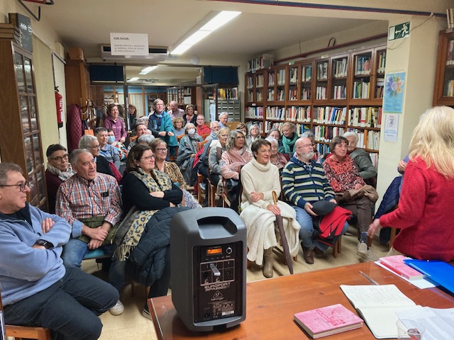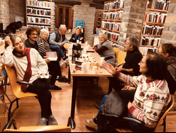 Boltaña, Huesca, 11/12/2022: encuentro con grupo de lectura en la biblioteca pública, con Merche Caballud.