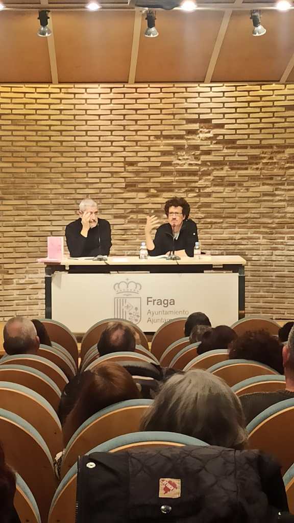 Fraga, Huesca, 13/12/2022: presentación en la biblioteca pública “Palacio Montcada”, junto a Laurel Orús.