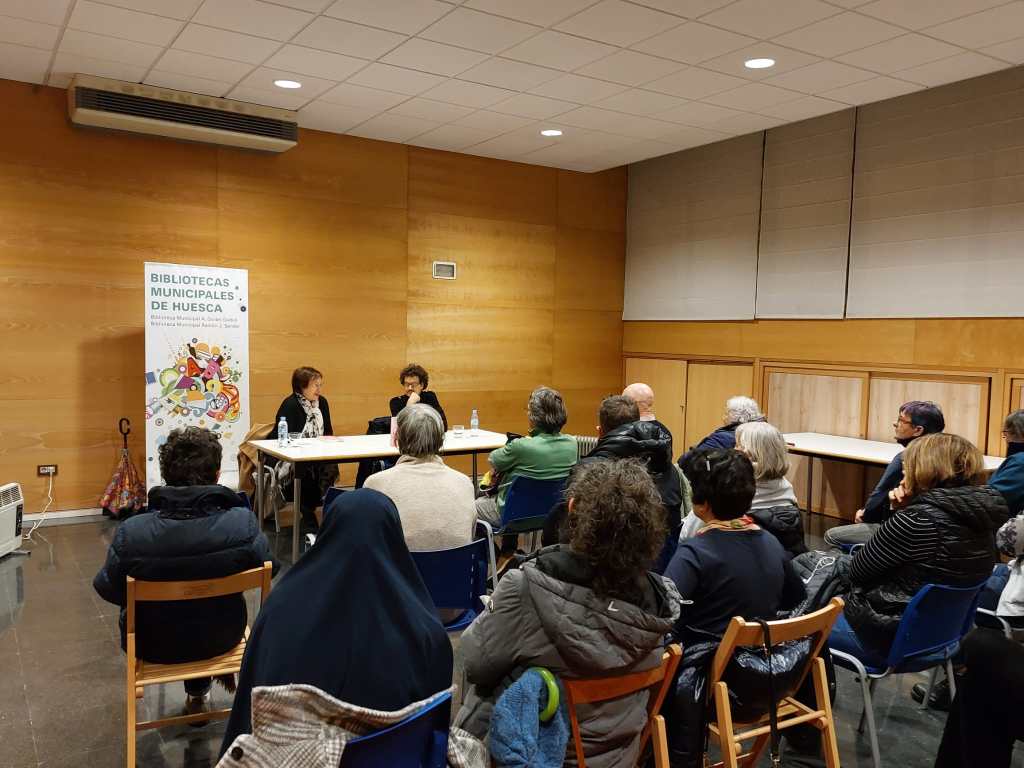 Fiscal, Huesca, 3/1/2023: encuentro con grupo de lectura en la biblioteca pública.